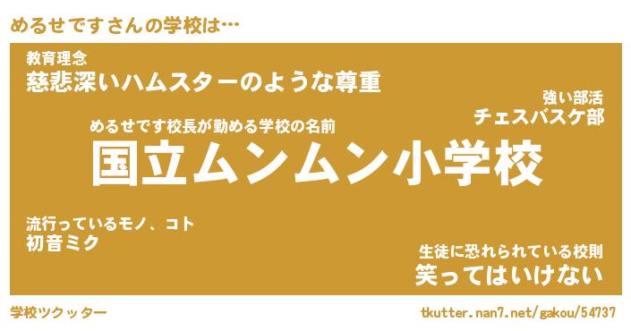 | 男性向けラノベタイトル風あだ名 | 『めるせですの憂鬱』 |