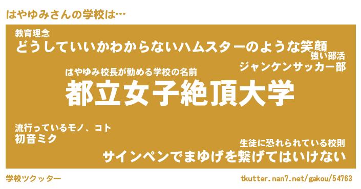 | 意味不明あだ名 | 『ペロリンはやゆみ』『永久保存はやゆみ』 |