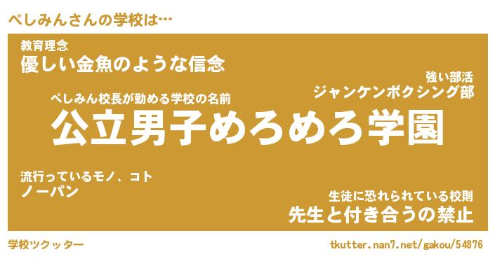 | 男性向けラノベタイトル風あだ名 | 『ぺしみんの憂鬱』 |