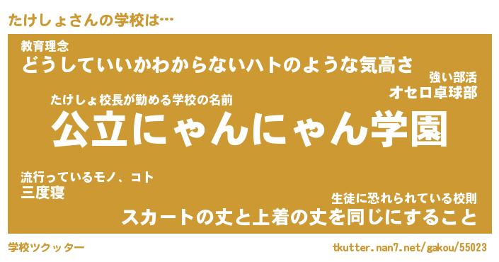 | 男性向けラノベタイトル風あだ名 | 『たけしょの憂鬱』 |