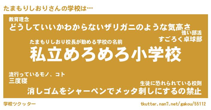| 男性向けラノベタイトル風あだ名 | 『たまもりしおりの憂鬱』 |