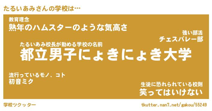 | ヘコむあだ名 | 『たるにゅー』『つくし』『たる太郎』 |