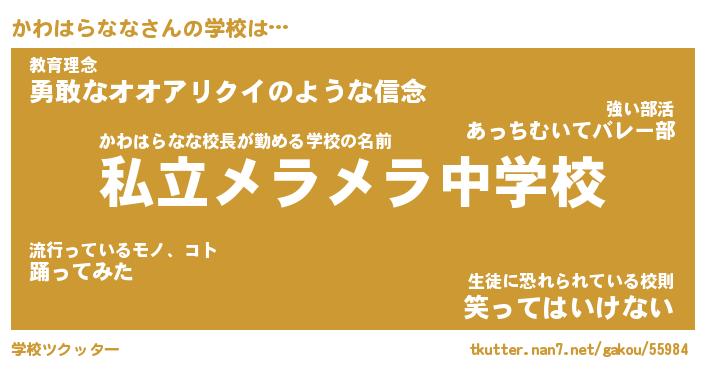 | ヒーロー風カッコイイあだ名 | 『スーパーカワハラナナ』『幻影騎士カワ』 |
