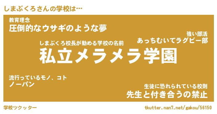 | ヒーロー風カッコイイあだ名 | 『スーパーシマブクロ』『天弓騎士シマ』 |