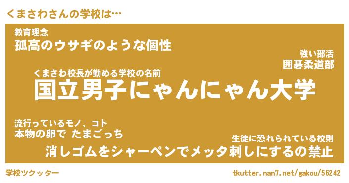 | 男性向けラノベタイトル風あだ名 | 『くまさわの憂鬱』 |