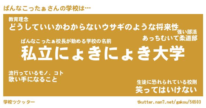 | 男性向けラノベタイトル風あだ名 | 『ぱんなこったぁの憂鬱』 |