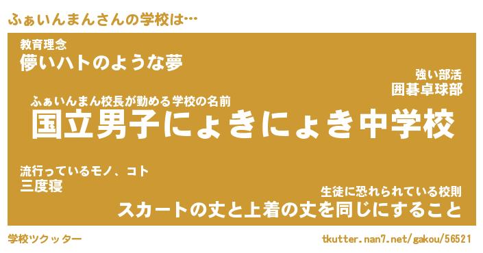 | 男性向けラノベタイトル風あだ名 | 『ふぁいんまんの憂鬱』 |