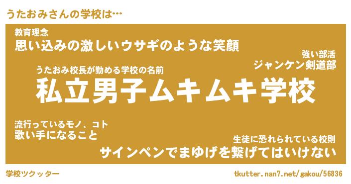 | 男性向けラノベタイトル風あだ名 | 『うたおみの憂鬱』 |
