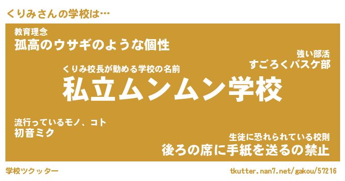 | 男性向けラノベタイトル風あだ名 | 『くりみの憂鬱』 |