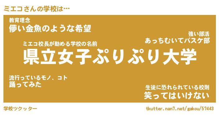 | ファンタジー風あだ名 | 『ミエフェル』『エターナルミエコー』 |