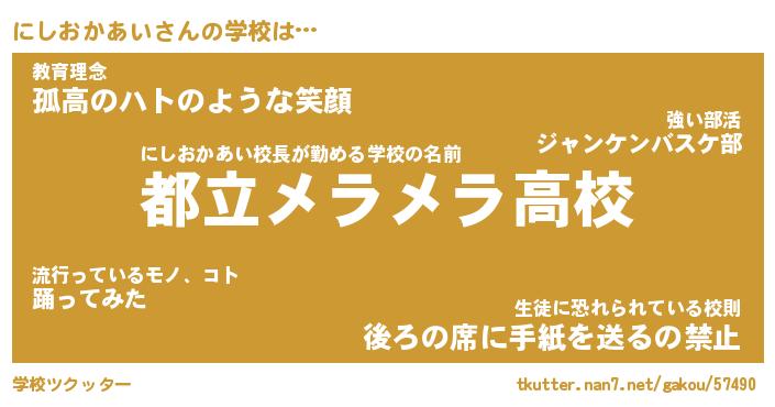 | 男性向けラノベタイトル風あだ名 | 『にしおかあいの憂鬱』 |