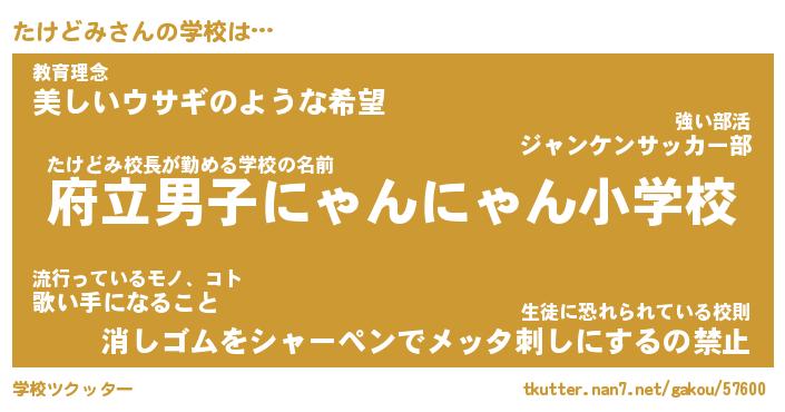 | ファンタジー風あだ名 | 『タケフェル』『エターナルタケドミー』 |