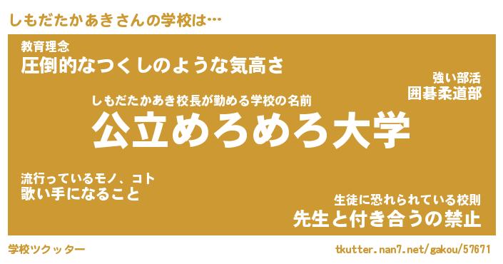 | 男性向けラノベタイトル風あだ名 | 『しもだたかあきの憂鬱』 |