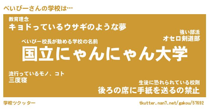 | ファンタジー風あだ名 | 『ベイフェル』『エターナルベイビーー』 |