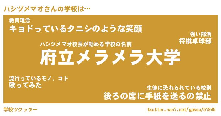 | ピコ太郎風あだ名 | 『ハコ次郎』『ピハ次郎』『ハシ一郎』 |