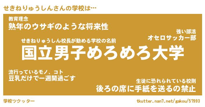 | 男性向けラノベタイトル風あだ名 | 『せきねりゅうしんの憂鬱』 |