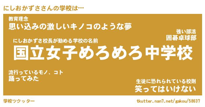 | ヒーロー風カッコイイあだ名 | 『スーパーニシオカズサ』『暗黒騎士ニシ』 |