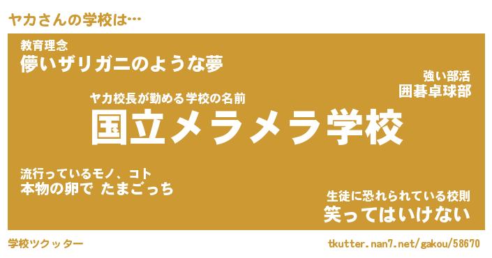 | ヘコむあだ名 | 『ヤカにー』『なまこ酢』『ヤカっ子』 |