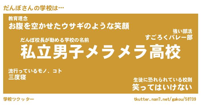 | 男性向けラノベタイトル風あだ名 | 『だんぼの憂鬱』 |