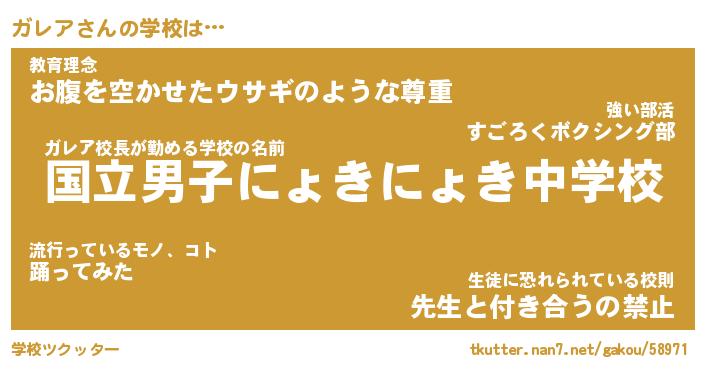 | ヒーロー風カッコイイあだ名 | 『スーパーガレア』『ウルトラガレアマン』 |