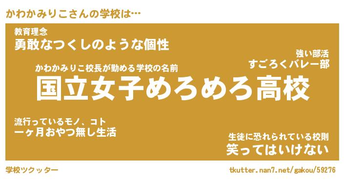 | 伝説のあだ名 | 『封印されしスナイパーかわかみりこ』 |