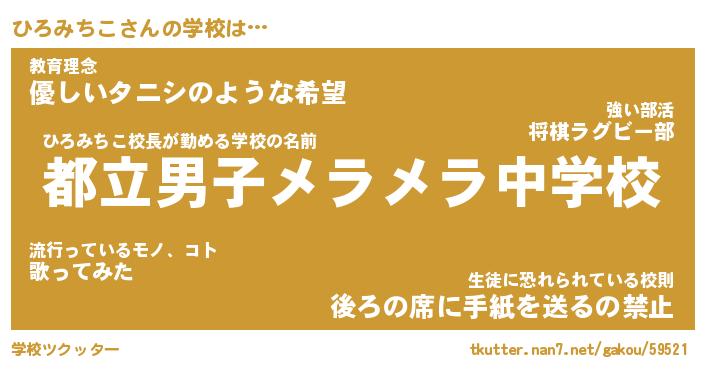 | ヒーロー風カッコイイあだ名 | 『スーパーヒロミチコ』『天弓騎士ヒロ』 |