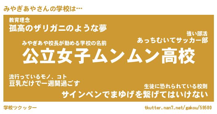 | ヘコむあだ名 | 『みやにゅー』『つくし』 |