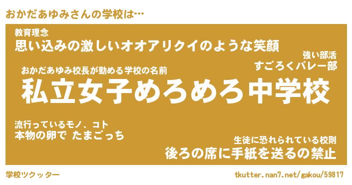 | 伝説のあだ名 | 『封印されしスナイパーおかだあゆみ』 |
