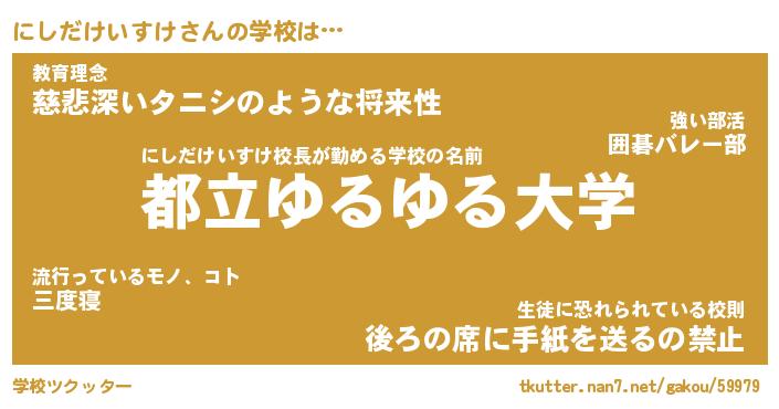 | 男性向けラノベタイトル風あだ名 | 『にしだけいすけの憂鬱』 |