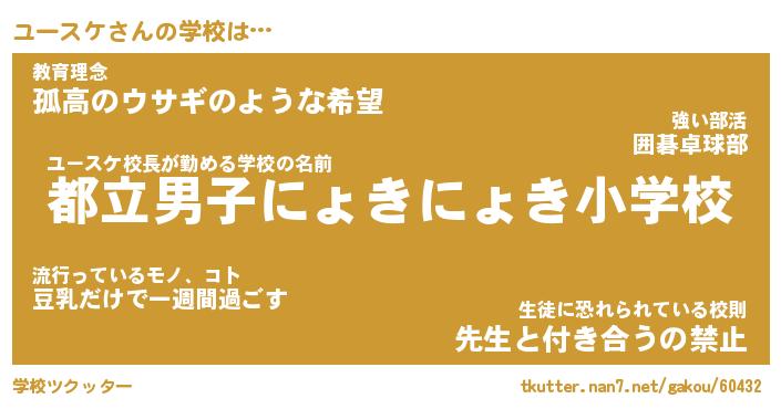 | ピコ太郎風あだ名 | 『ユコ史郎』『ピユ六郎』『ユー四郎』 |