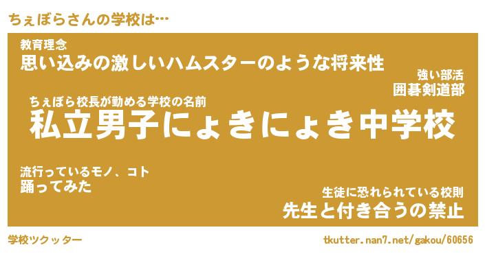 | 男性向けラノベタイトル風あだ名 | 『ちぇぼらの憂鬱』 |