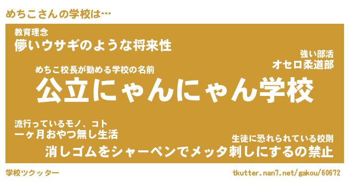 | 男性向けラノベタイトル風あだ名 | 『めちこの憂鬱』 |