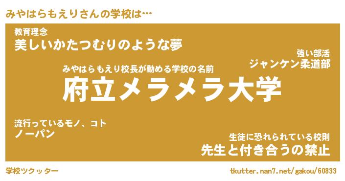 | 男性向けラノベタイトル風あだ名 | 『みやはらもえりの憂鬱』 |