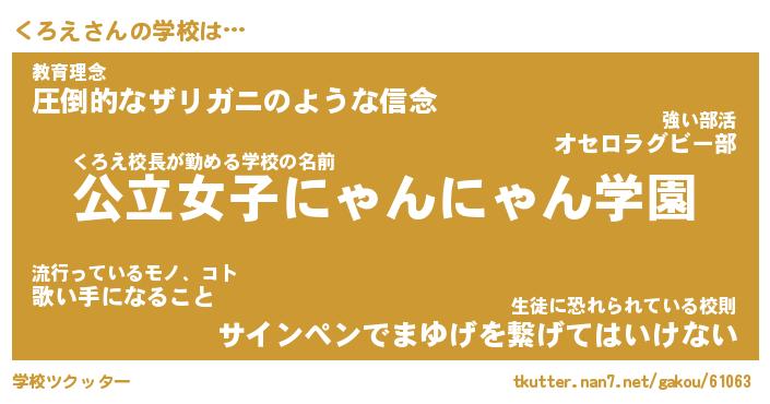 | 肩書あだ名 | 『くろえ社長令嬢』『くろえ総理大臣』 |
