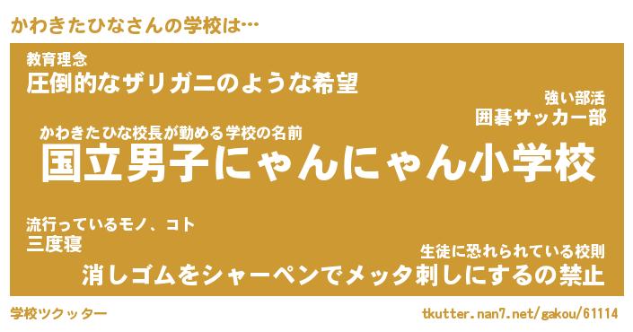 | ヒーロー風カッコイイあだ名 | 『スーパーカワキタヒナ』『炎刃騎士カワ』 |