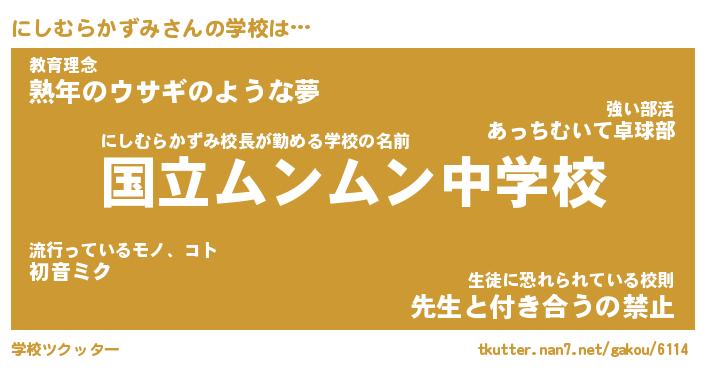 | 男性向けラノベタイトル風あだ名 | 『にしむらかずみの憂鬱』 |