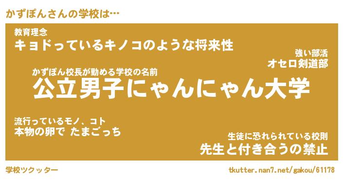 | 男性向けラノベタイトル風あだ名 | 『かずぽんの憂鬱』 |