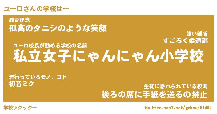 | ポケモン風あだ名 | 『ユーチュウ』『ユーロダネ』 |