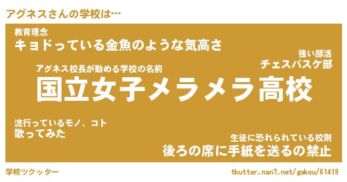 | ヒーロー風カッコイイあだ名 | 『スーパーアグネス』『暗黒騎士アグ』 |