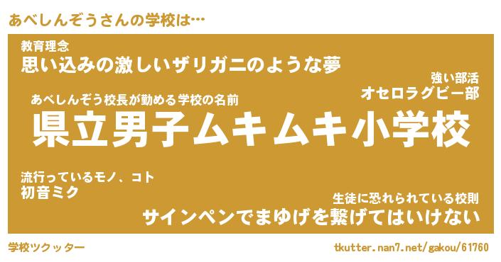 | ヒーロー風カッコイイあだ名 | 『スーパーアベシンゾウ』『天弓騎士アベ』 |