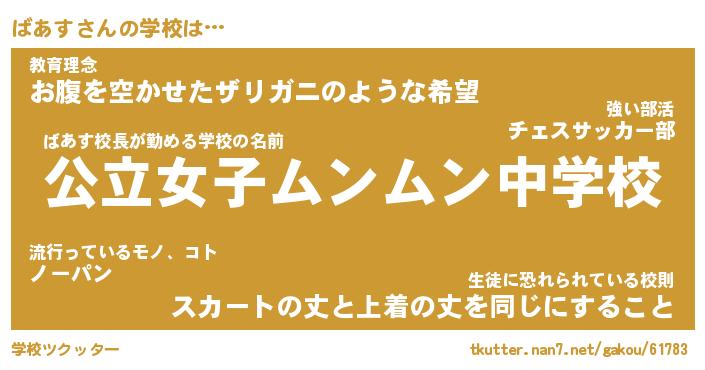 | 先生 | ばあす先生が勤める学校名『府立もふもふ中学校』 |