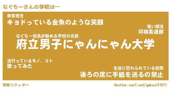| 女子向けラノベタイトル風あだ名 | 『なぐちー姫と円卓の騎士』 |