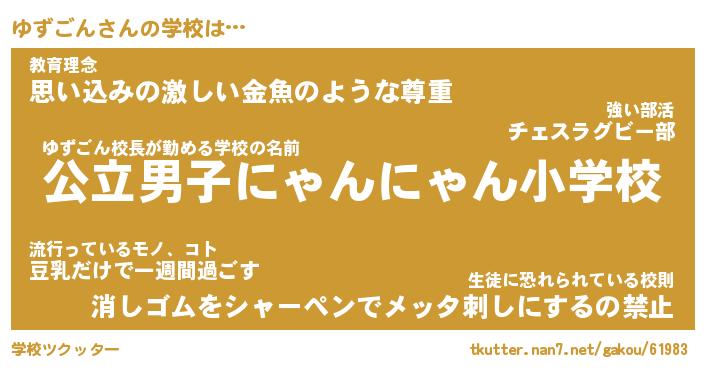 | 意味不明あだ名 | 『ペロリンゆずごん』『永久保存ゆずごん』 |