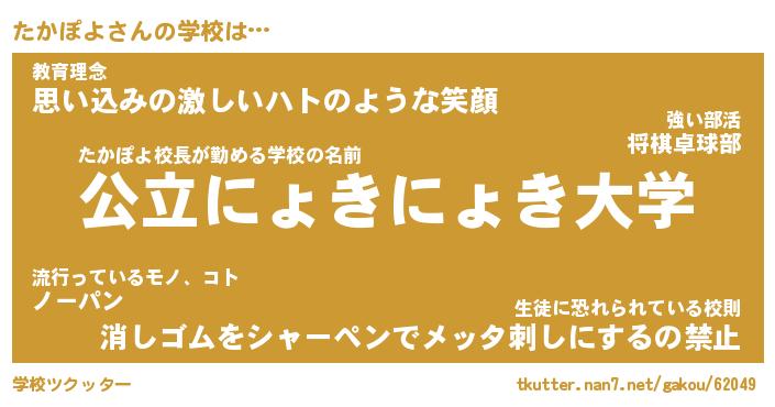 | 意味不明あだ名 | 『ペロリンたかぽよ』『永久保存たかぽよ』 |