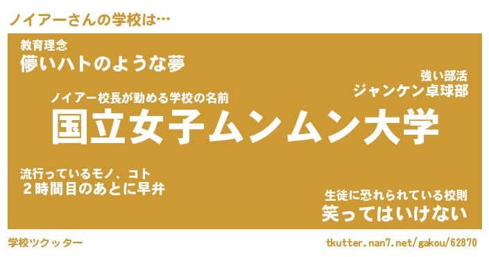 | ヘコむあだ名 | 『ノイにゅー』『なまこ酢』『ノイお』 |