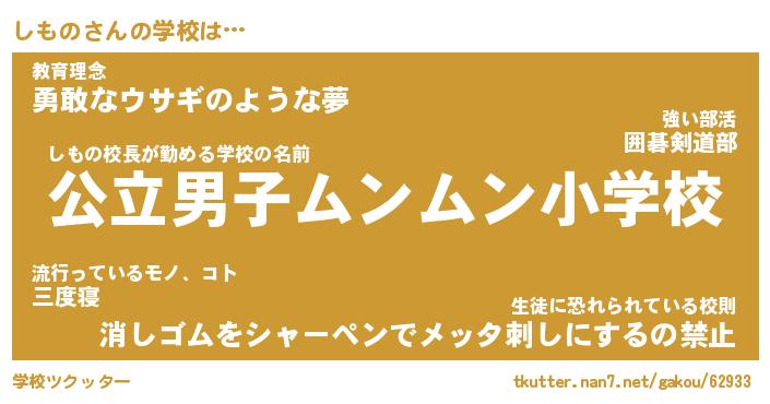 | 男性向けラノベタイトル風あだ名 | 『しものの憂鬱』 |