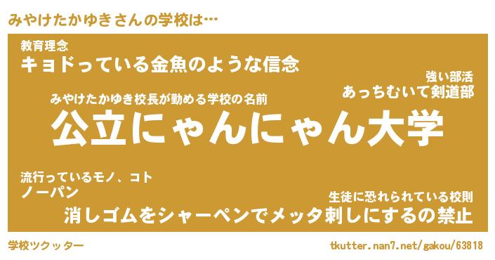 | 男性向けラノベタイトル風あだ名 | 『みやけたかゆきの憂鬱』 |