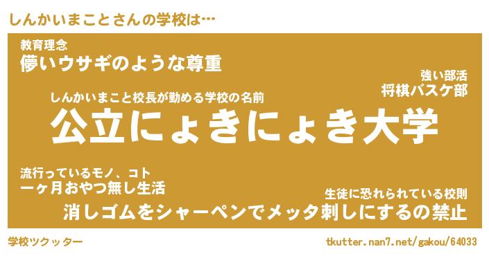 | 男性向けラノベタイトル風あだ名 | 『しんかいまことの憂鬱』 |