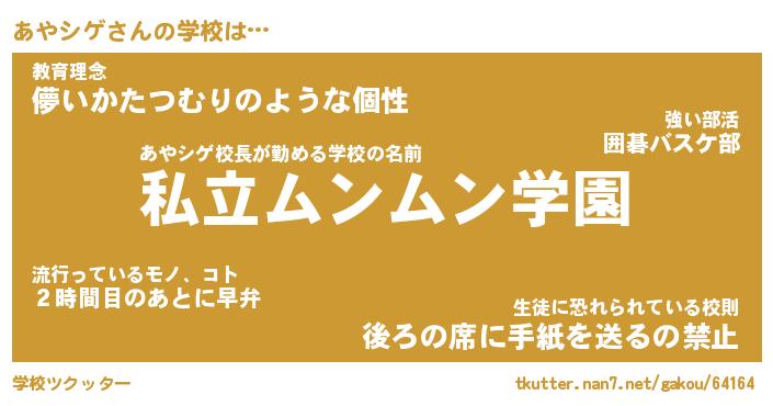 | 男性向けラノベタイトル風あだ名 | 『あやシゲの憂鬱』 |