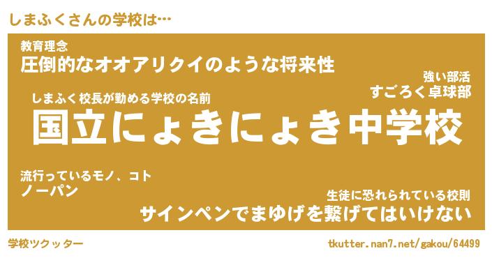 | 男性向けラノベタイトル風あだ名 | 『しまふくの憂鬱』 |